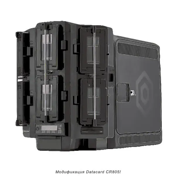 - Скорость печати**Односторонняя полноцветная печать (CMYKP) – до 100 карт/час; Двусторонняя полноцветная (CMYKP-KP) – до 66 карт/час